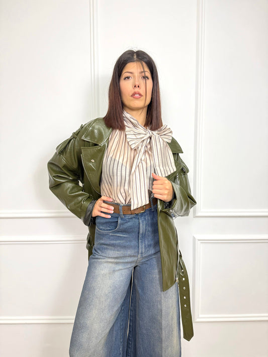 MOTEL DENIM BARREL VITA ALTA CON CINTURINA JALE OLIVA