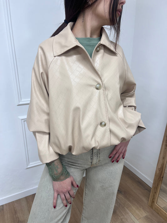 SUSY MIX BOMBER ECO TRAMA INTRECCIATA BOTTEGA BEIGE