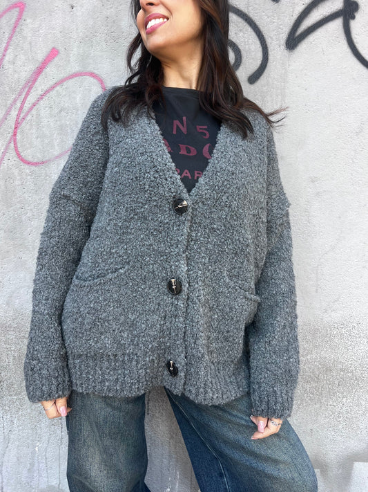 SUSY MIX CARDIGAN BOTTONI BOUCLE’ VIVIENNE GRIGIO
