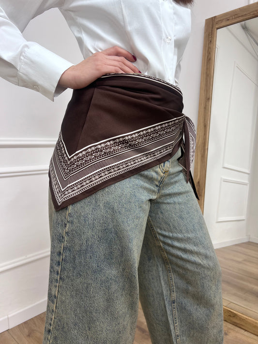 FOULARD TRIANGOLO SATIN STAMPA BANDANA MORO