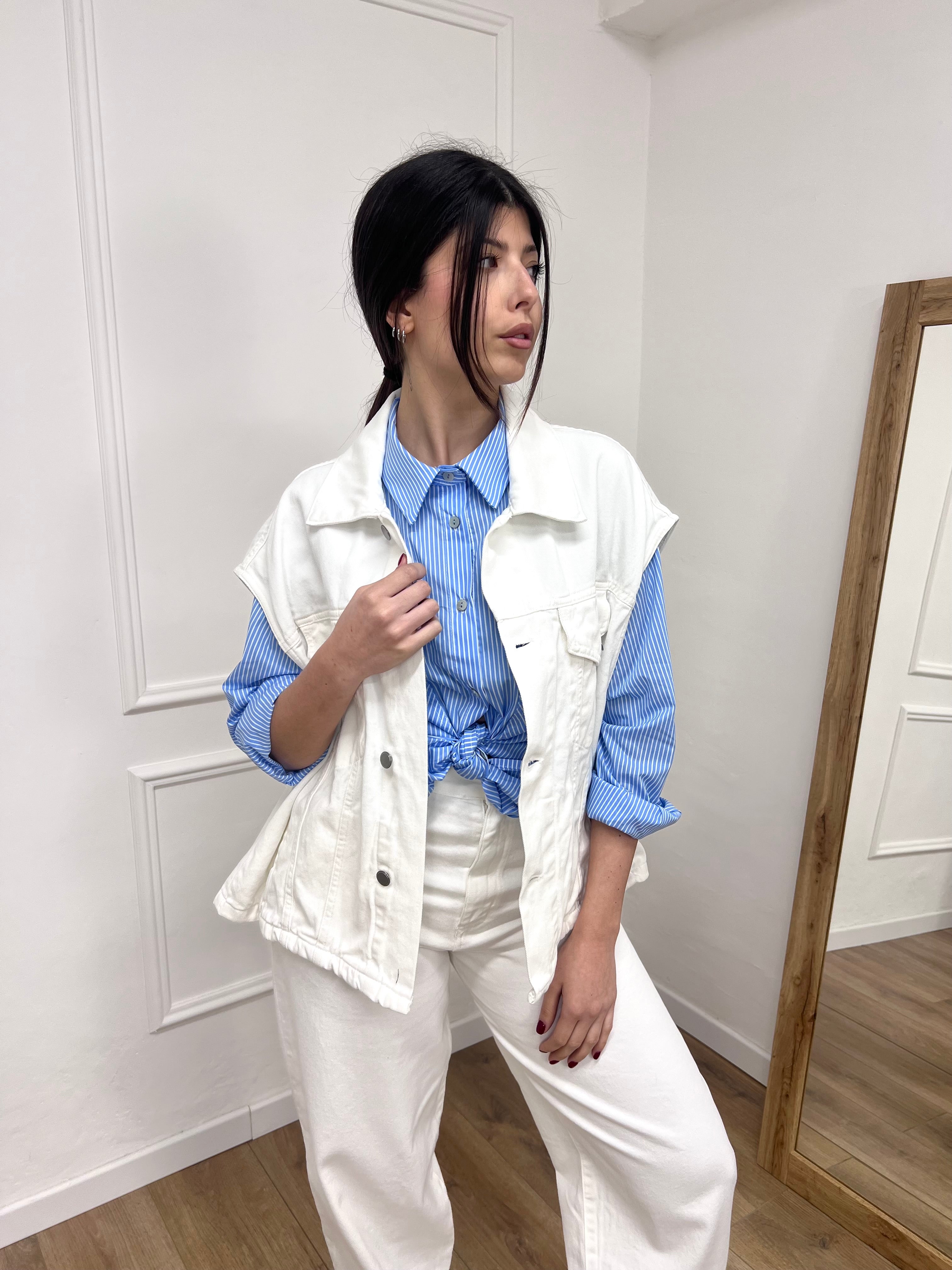 SUSY MIX GILET OVER TELA DENIM CAMY BIANCO