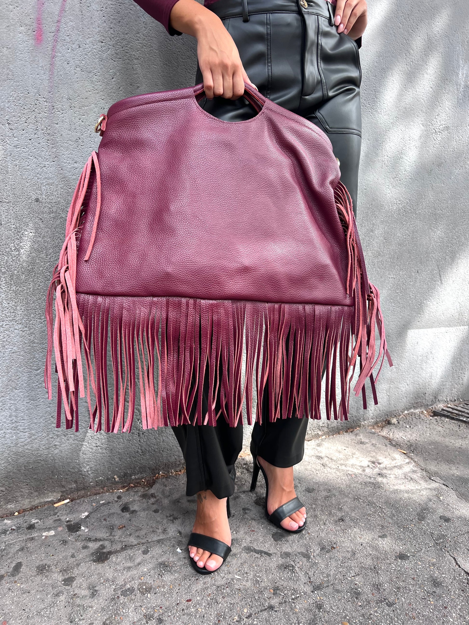 BORSA TOTE BAG MAXI FRANGE PELLE BURGUNDY