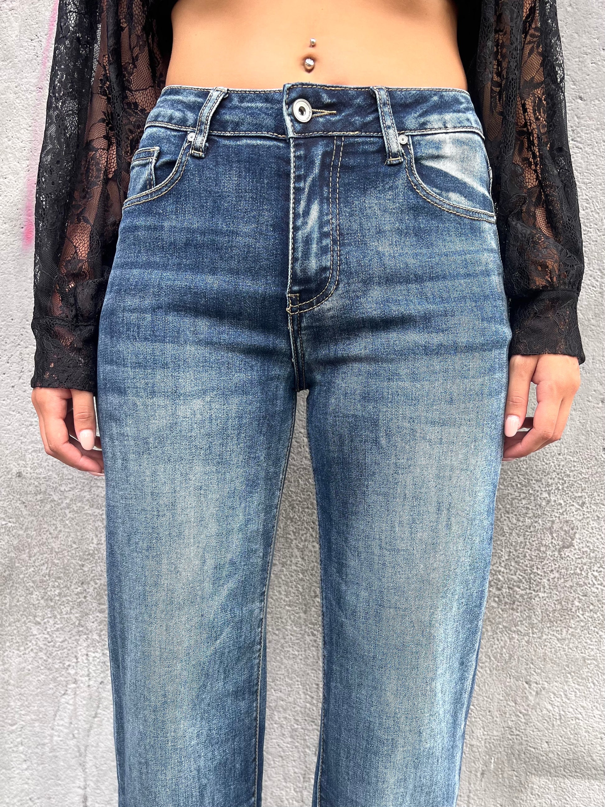 DENIM VITA ALTA FULL LENGT RISVOLTO KATIA BLU