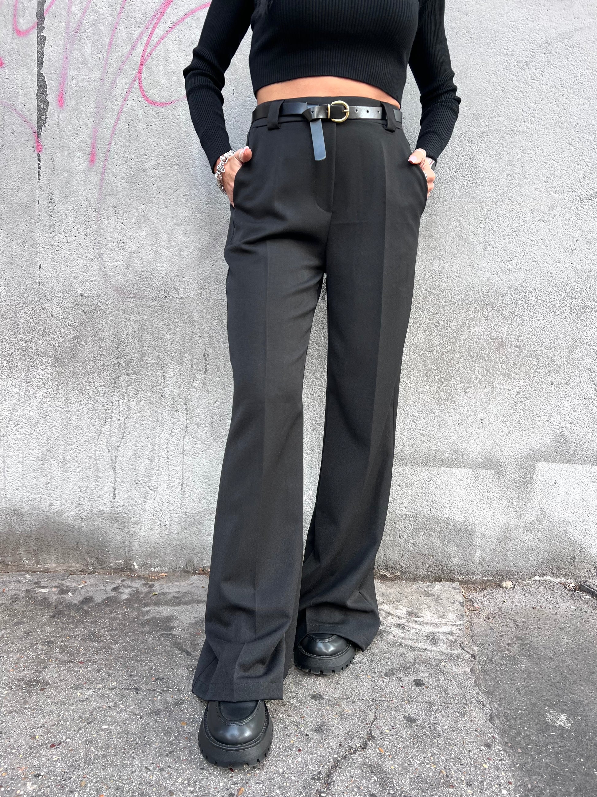 SUSY MIX PANTALONE PALAZZO DARIA NERO