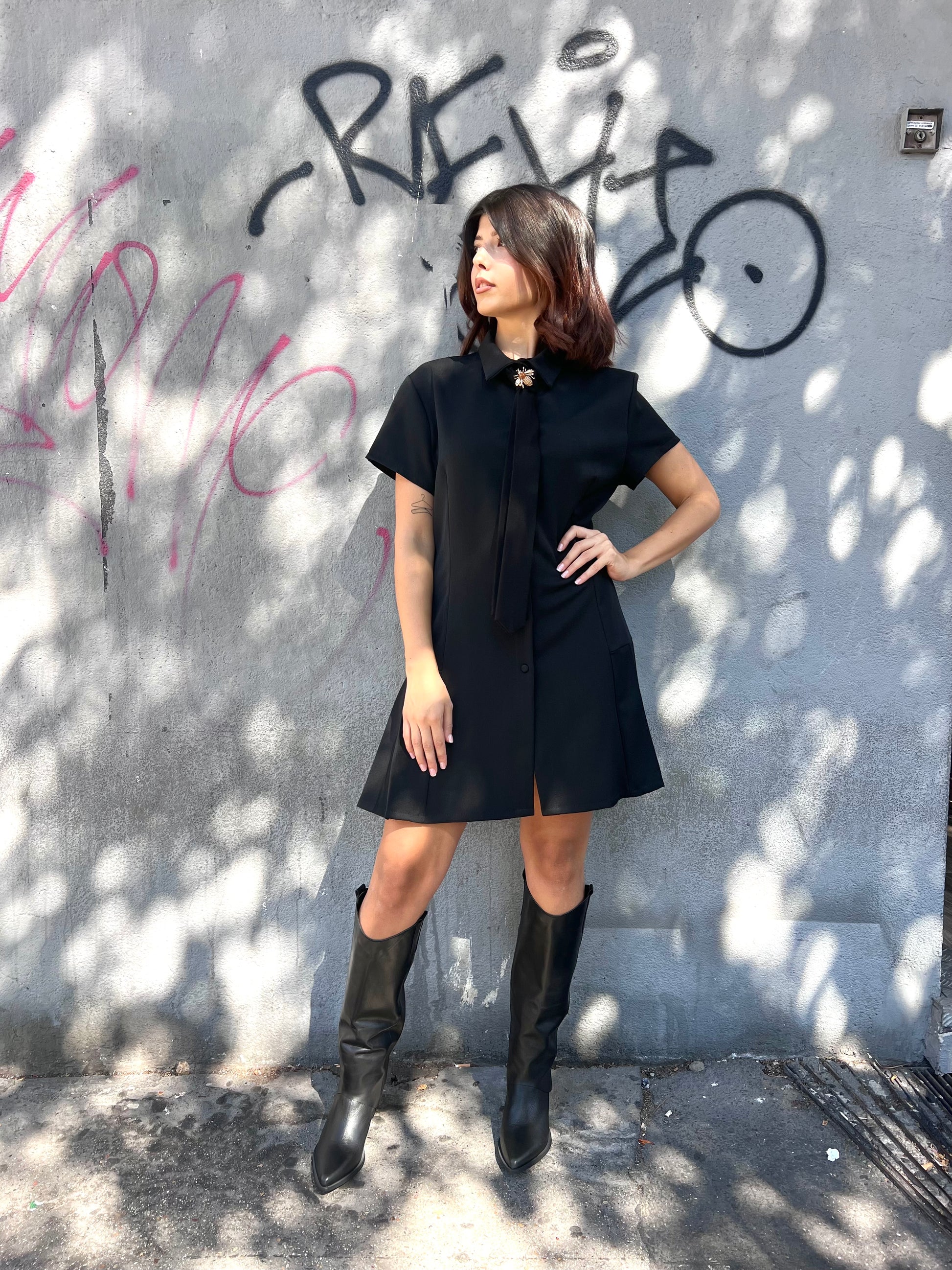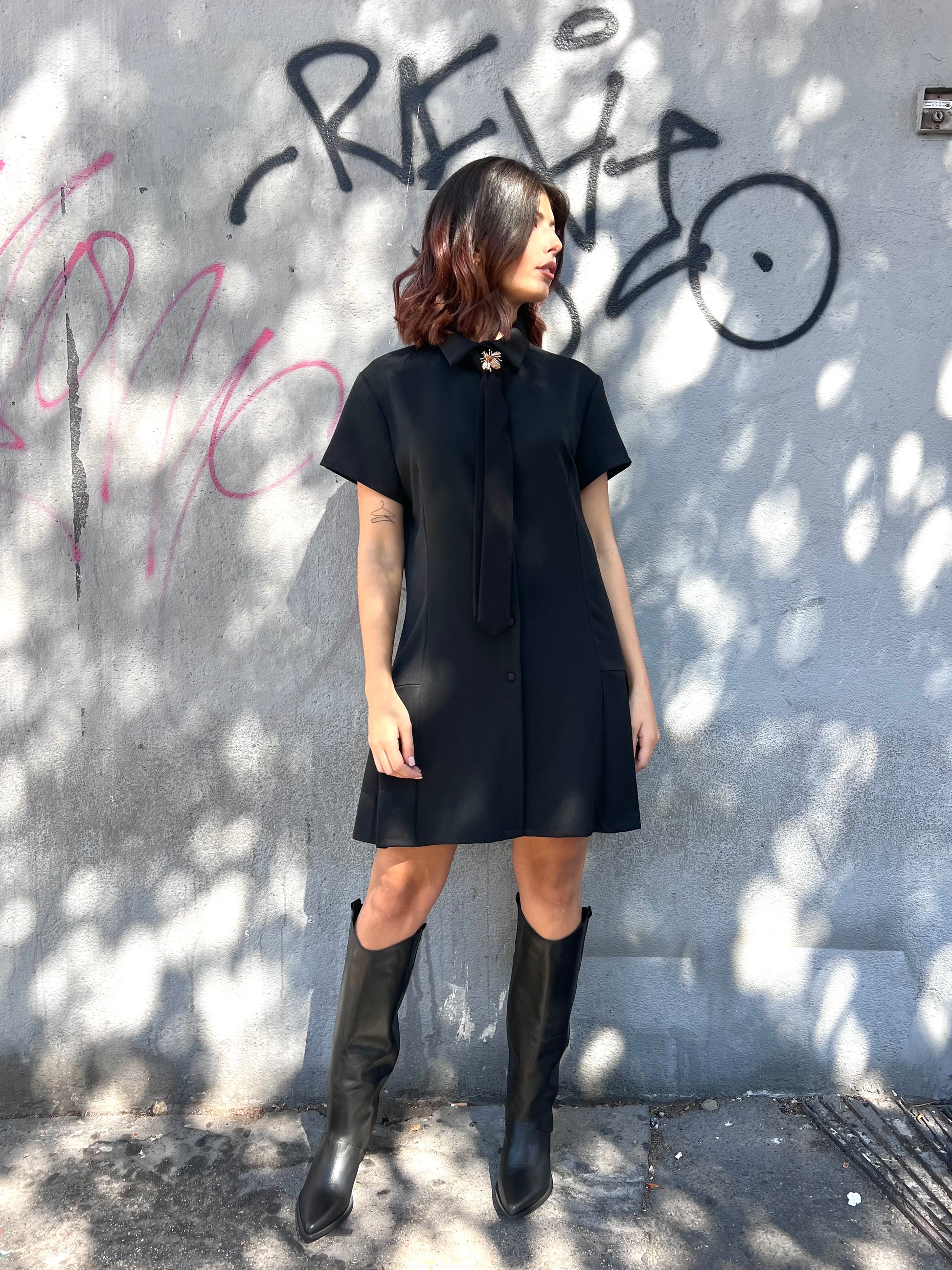SUSY MIX ABITO CORTO CHEMISIER CRAVATTA SPILLA BEE NERO
