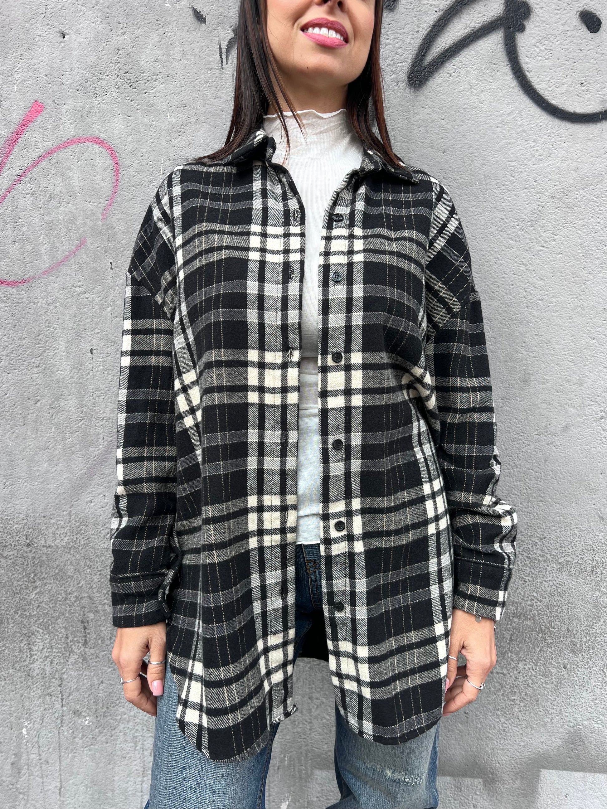 SUSY MIX CAMICIA FLANELLA CHECK MARTINA NERO