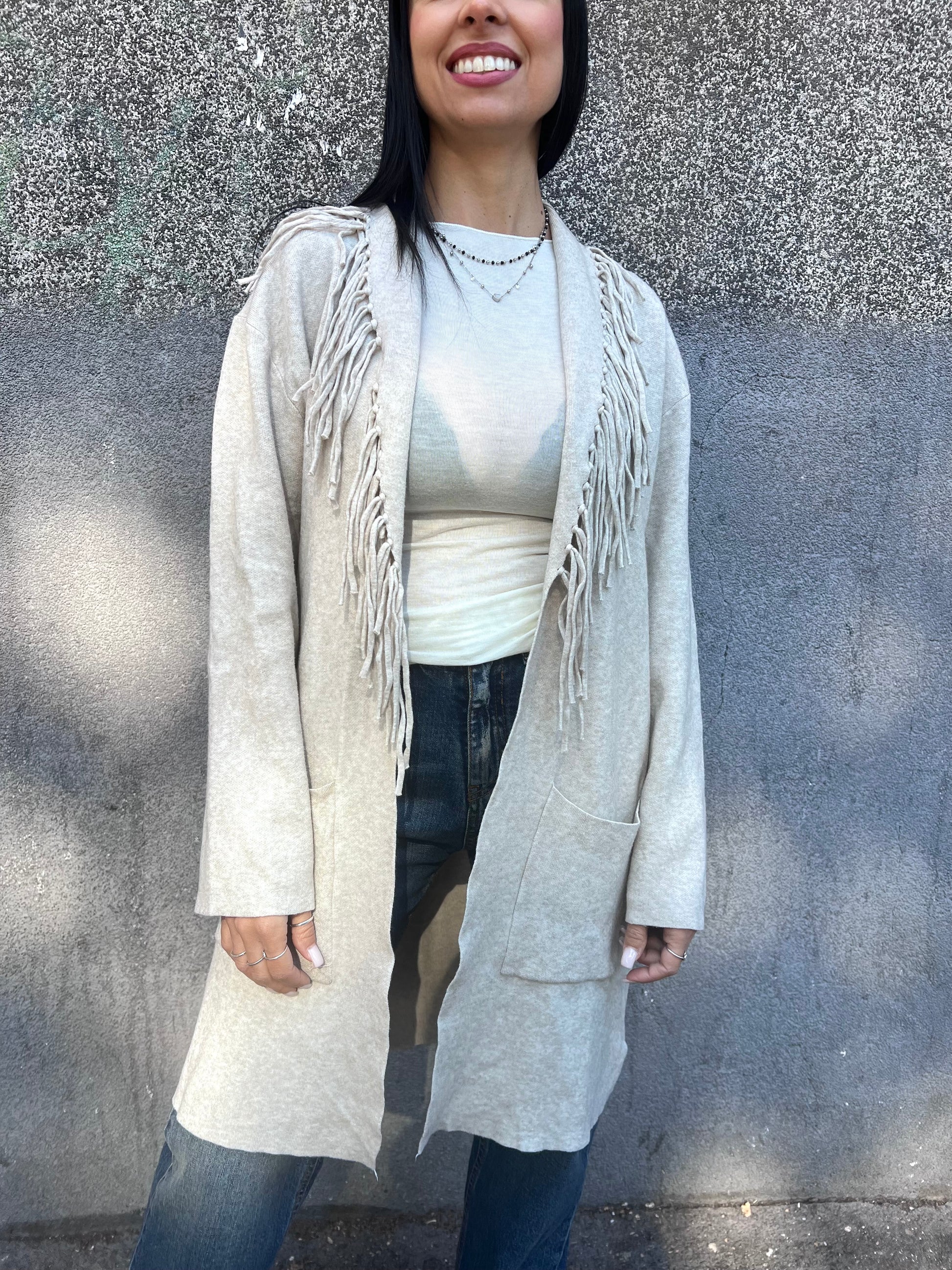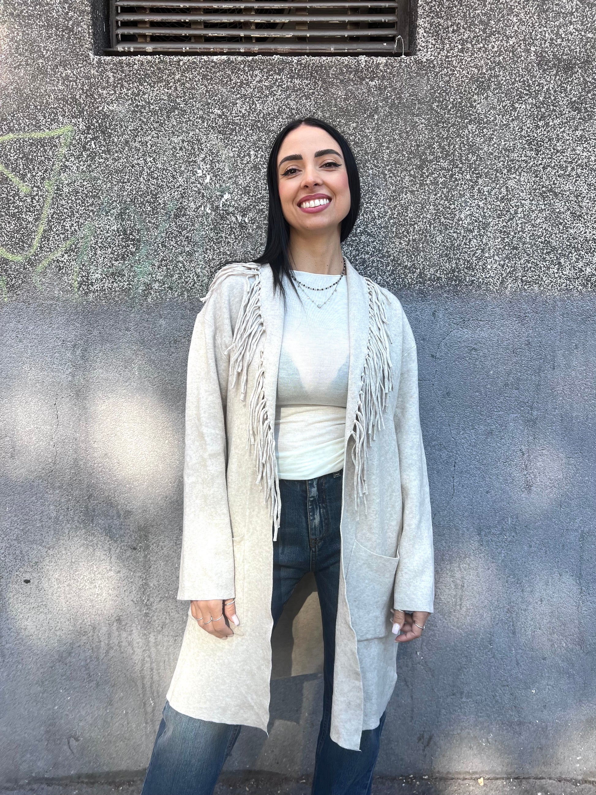 SUSY MIX CARDIGAN FRANGE MANOLA BEIGE
