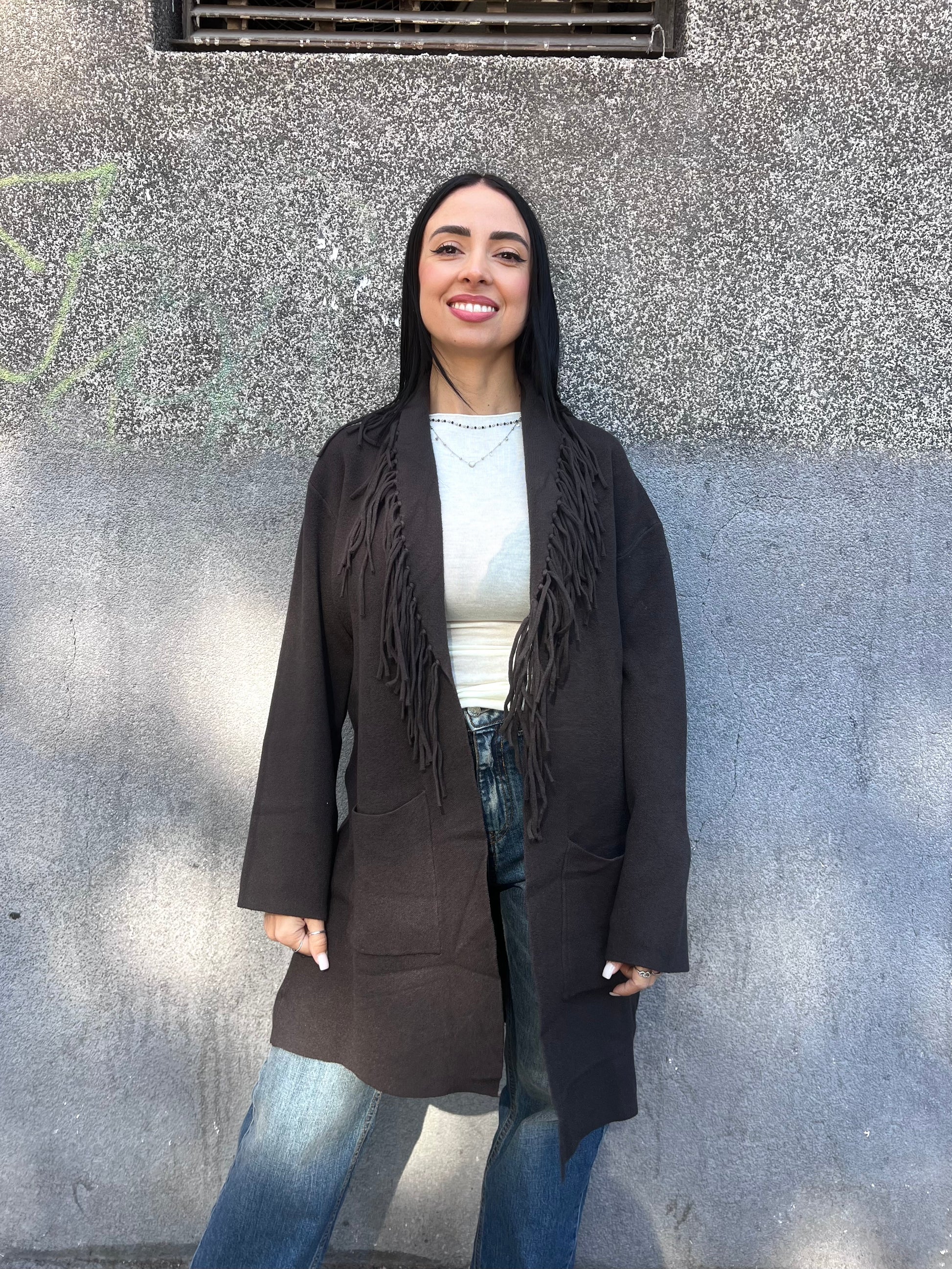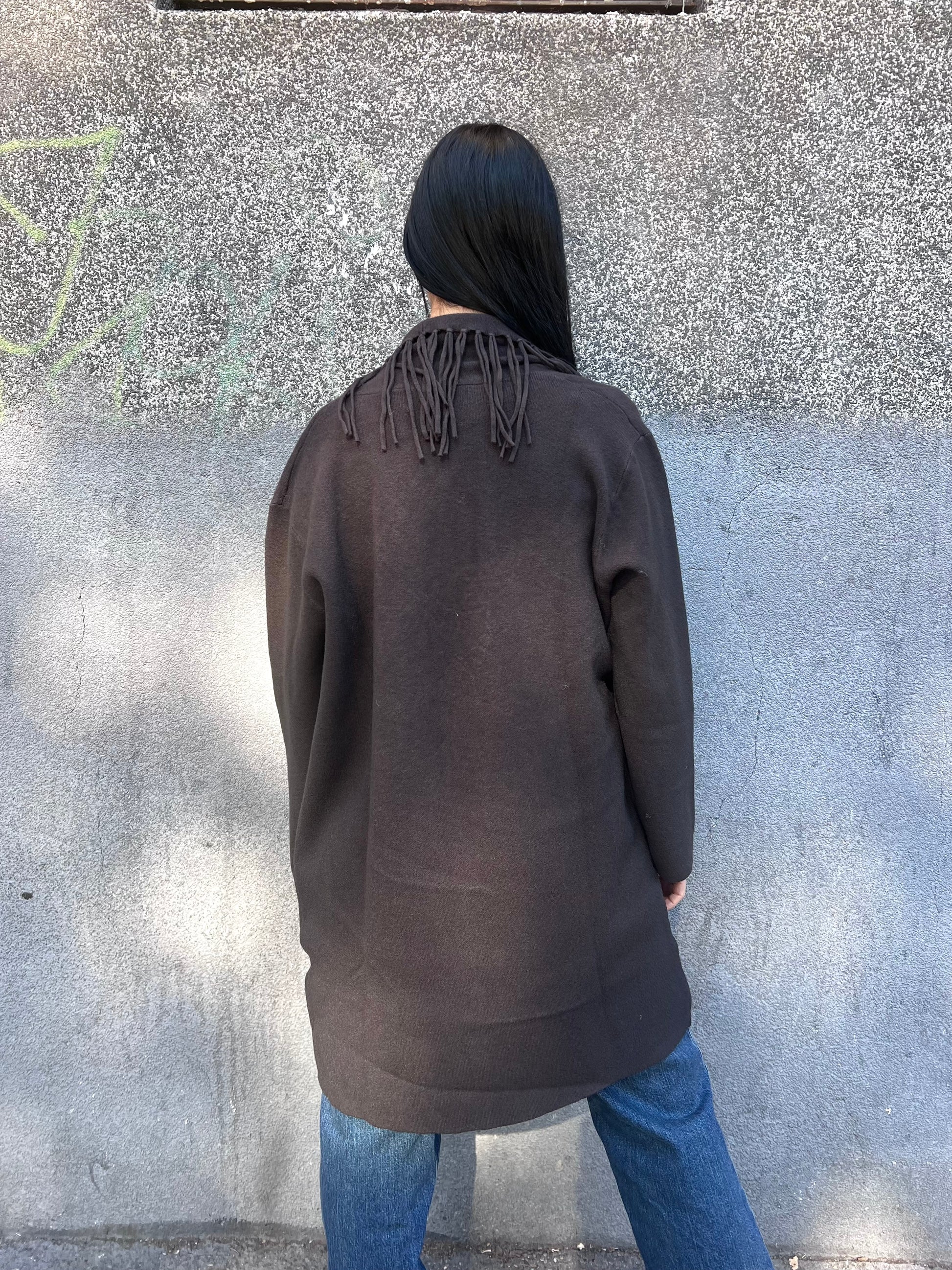SUSY MIX CARDIGAN FRANGE MANOLA CIOCCOLATO