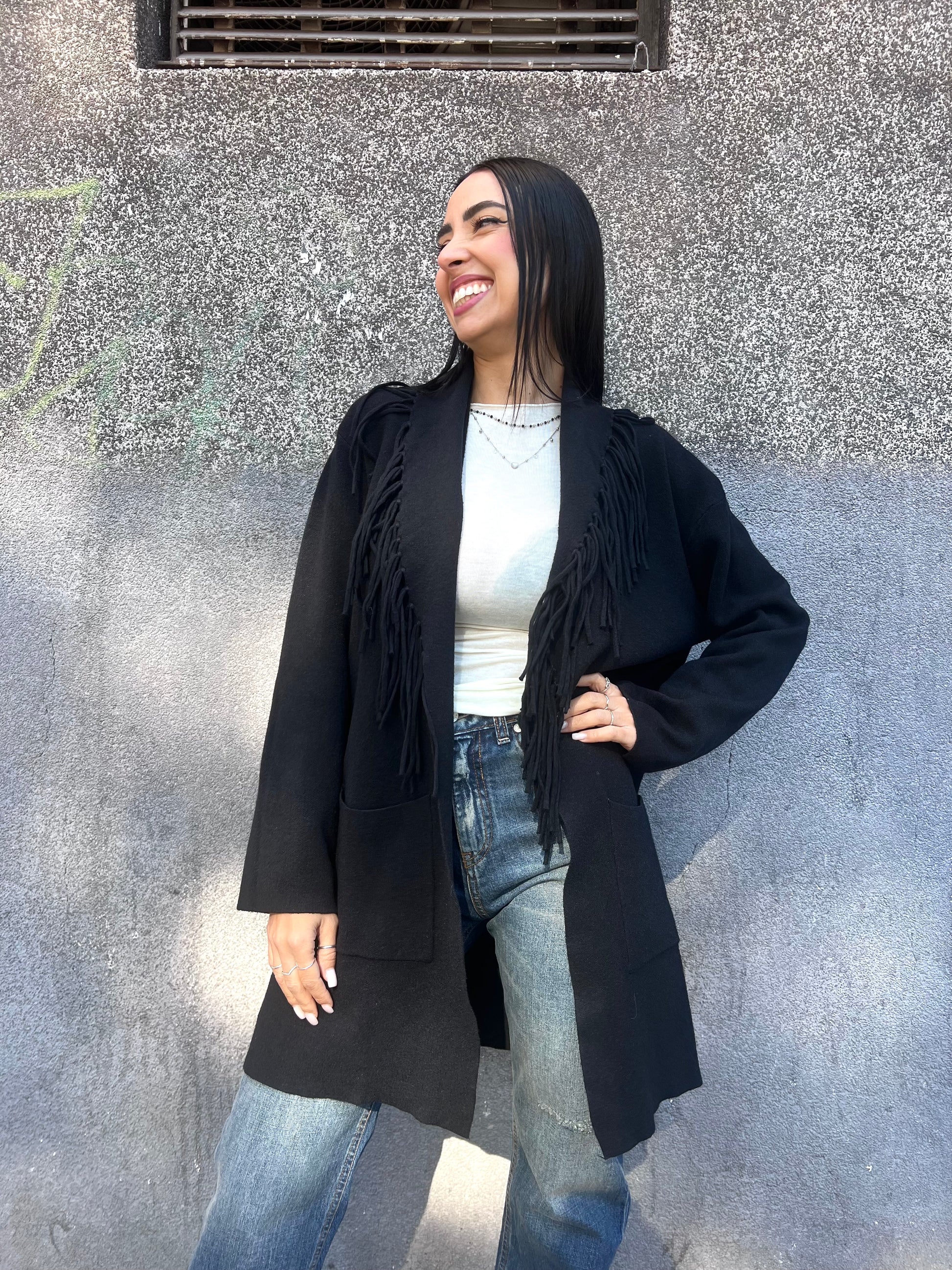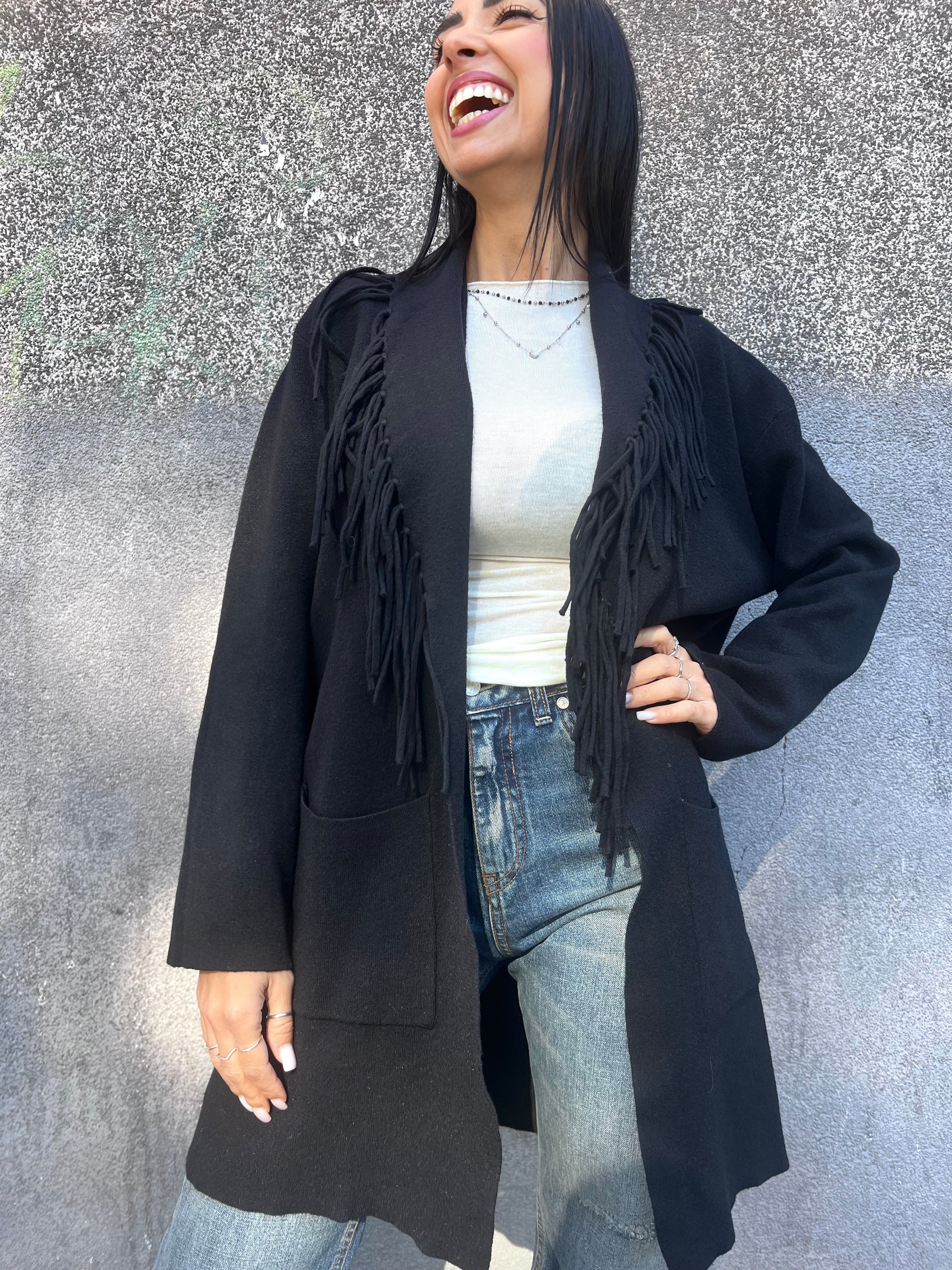SUSY MIX CARDIGAN FRANGE MANOLA NERO