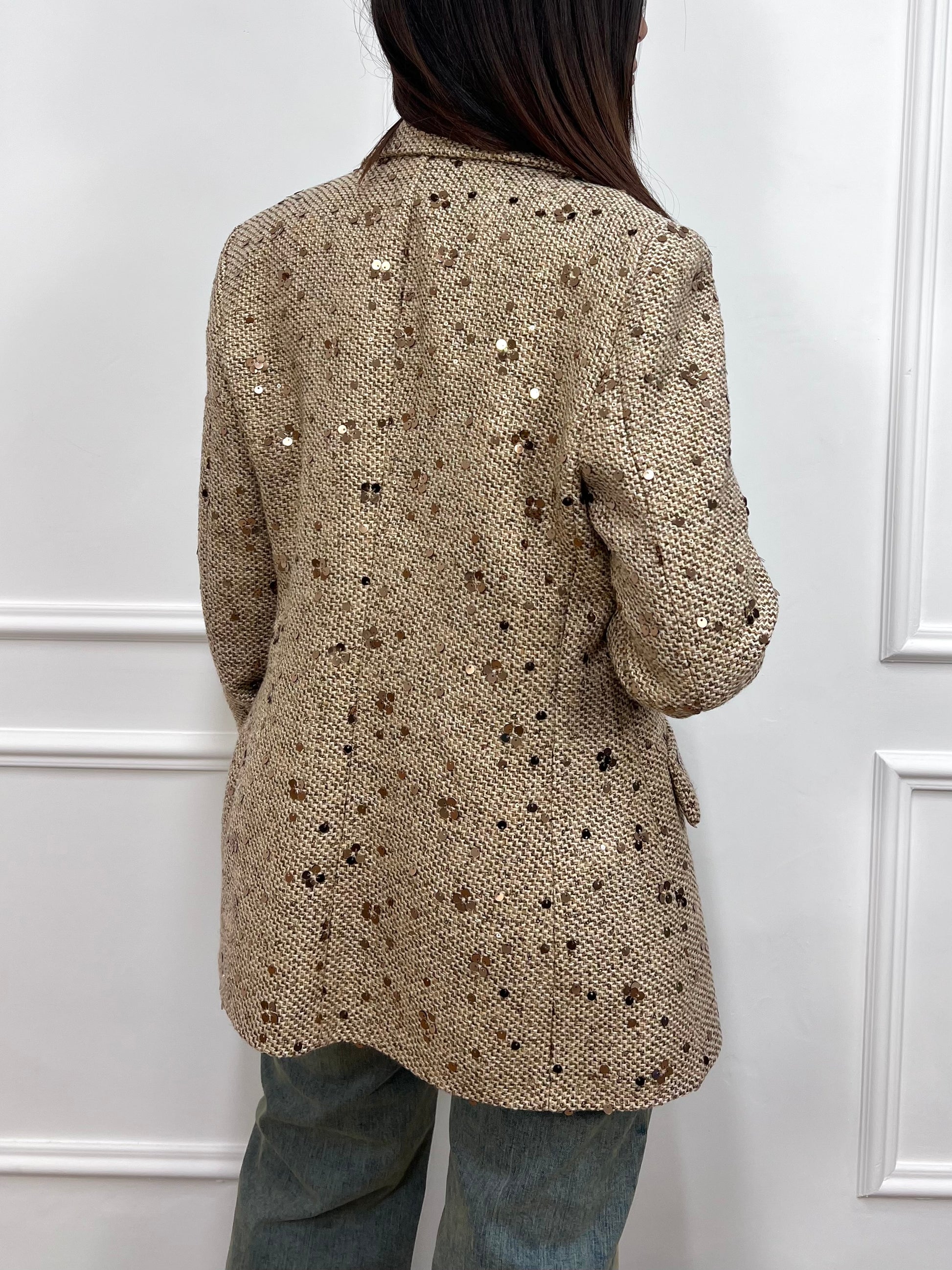 SUSY MIX GIACCA MONOPETTO PAILLETTES BEIGE