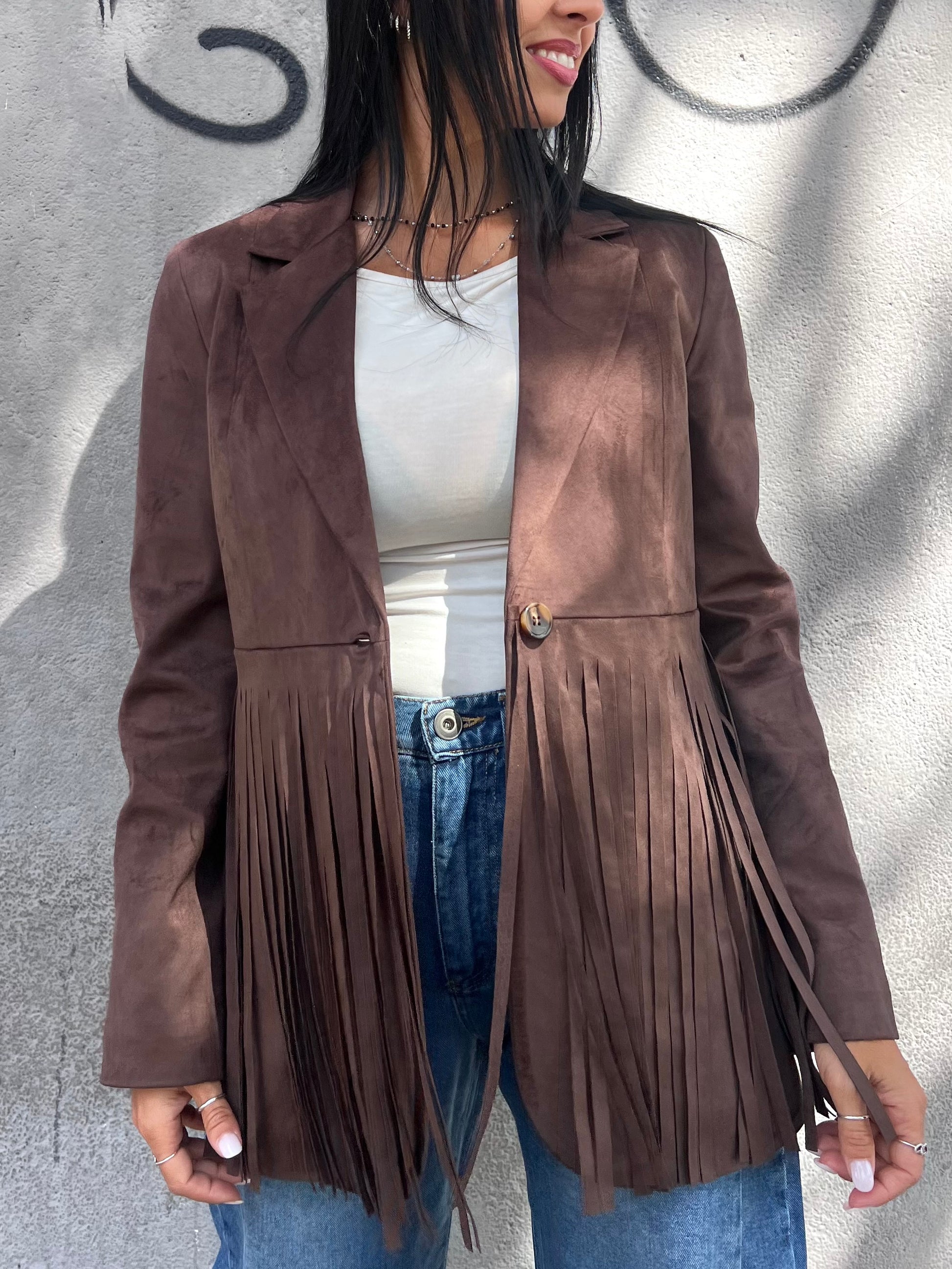 SUSY MIX GIACCA MONOPETTO SUEDE FRANGE LORENA MORO