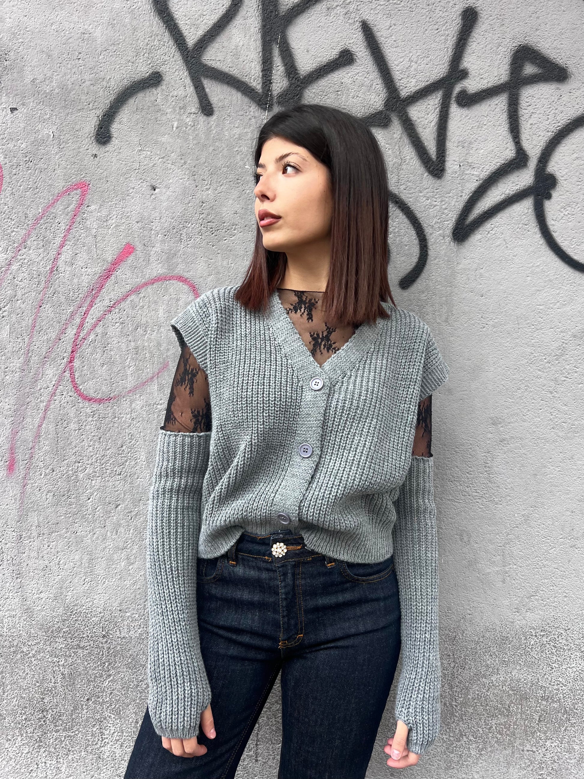 SUSY MIX GILET BOTTONI CON MANICOTTI BRIDGET GRIGIO