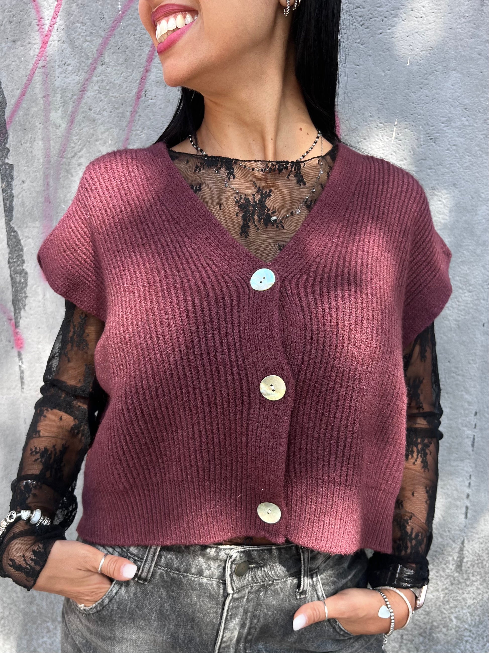 SUSY MIX GILET CROP COSTE BOTTONI GINNY VINO