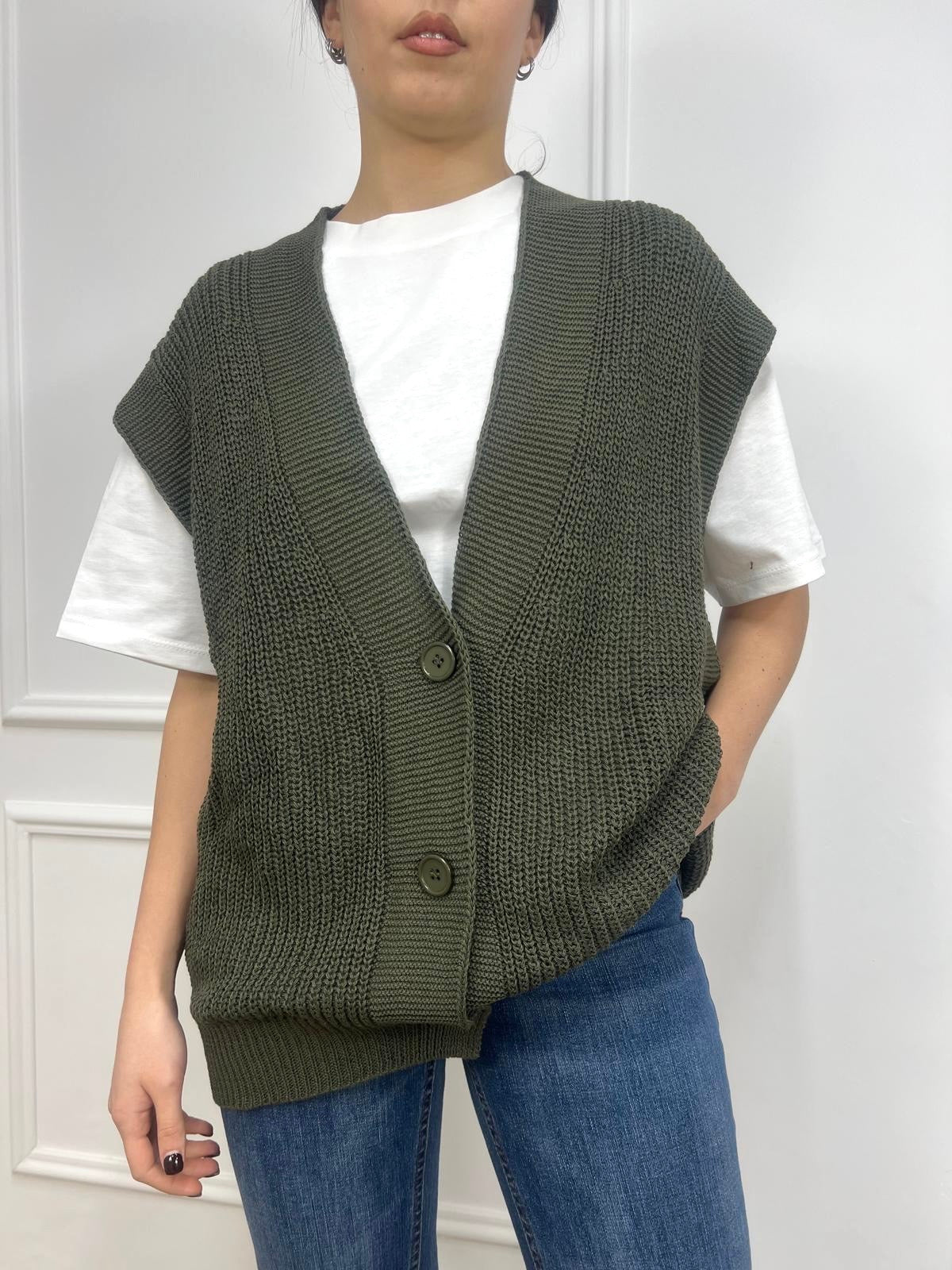 SUSY MIX GILET FILO SCOLLO V BOTTONI YARY MILITARE