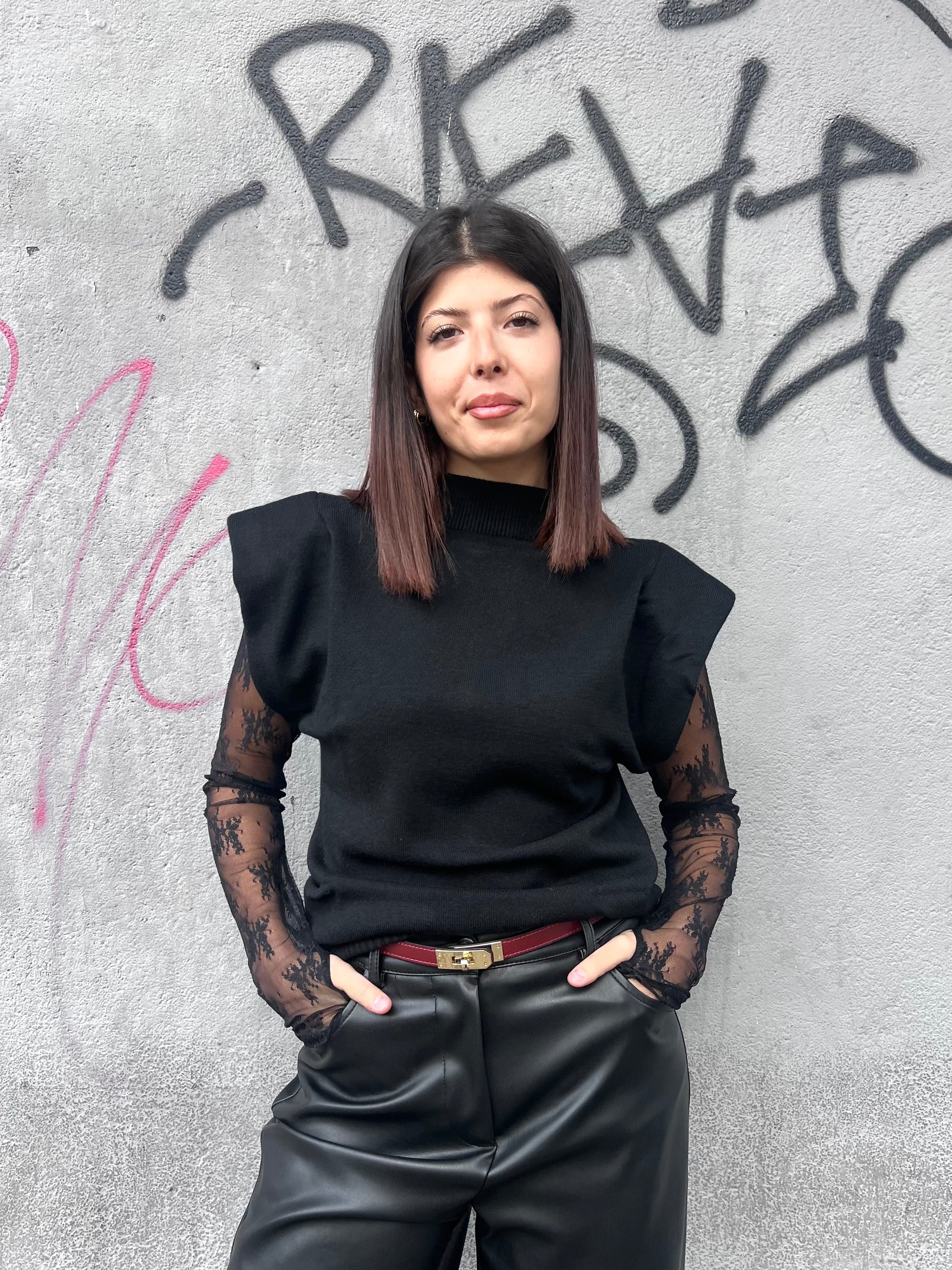 SUSY MIX GILET LUPETTO SPALLINE MORIS NERO