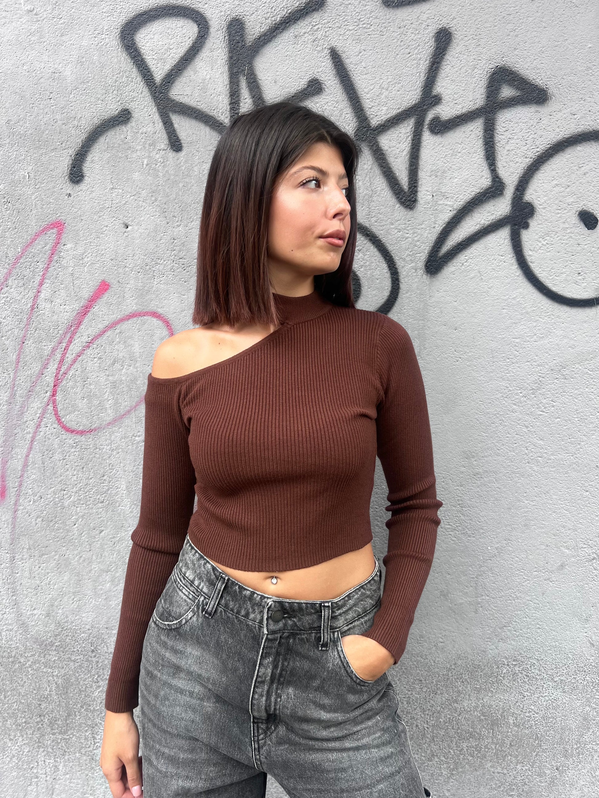SUSY MIX MAGLIA CROP CUT OUT COSTINE ILARIA MOKA