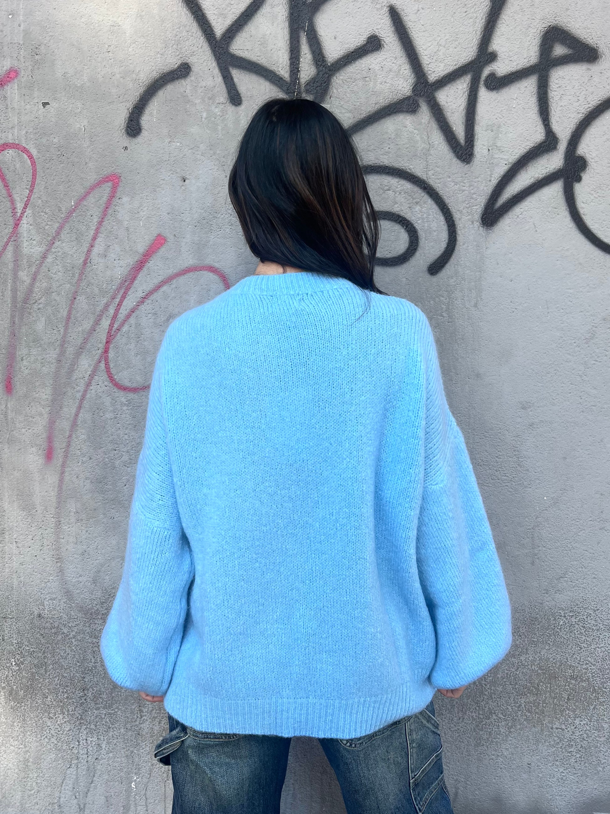 SUSY MIX MAGLIA OVER MOHAIR MANICA PALLONCINO MIA CIELO