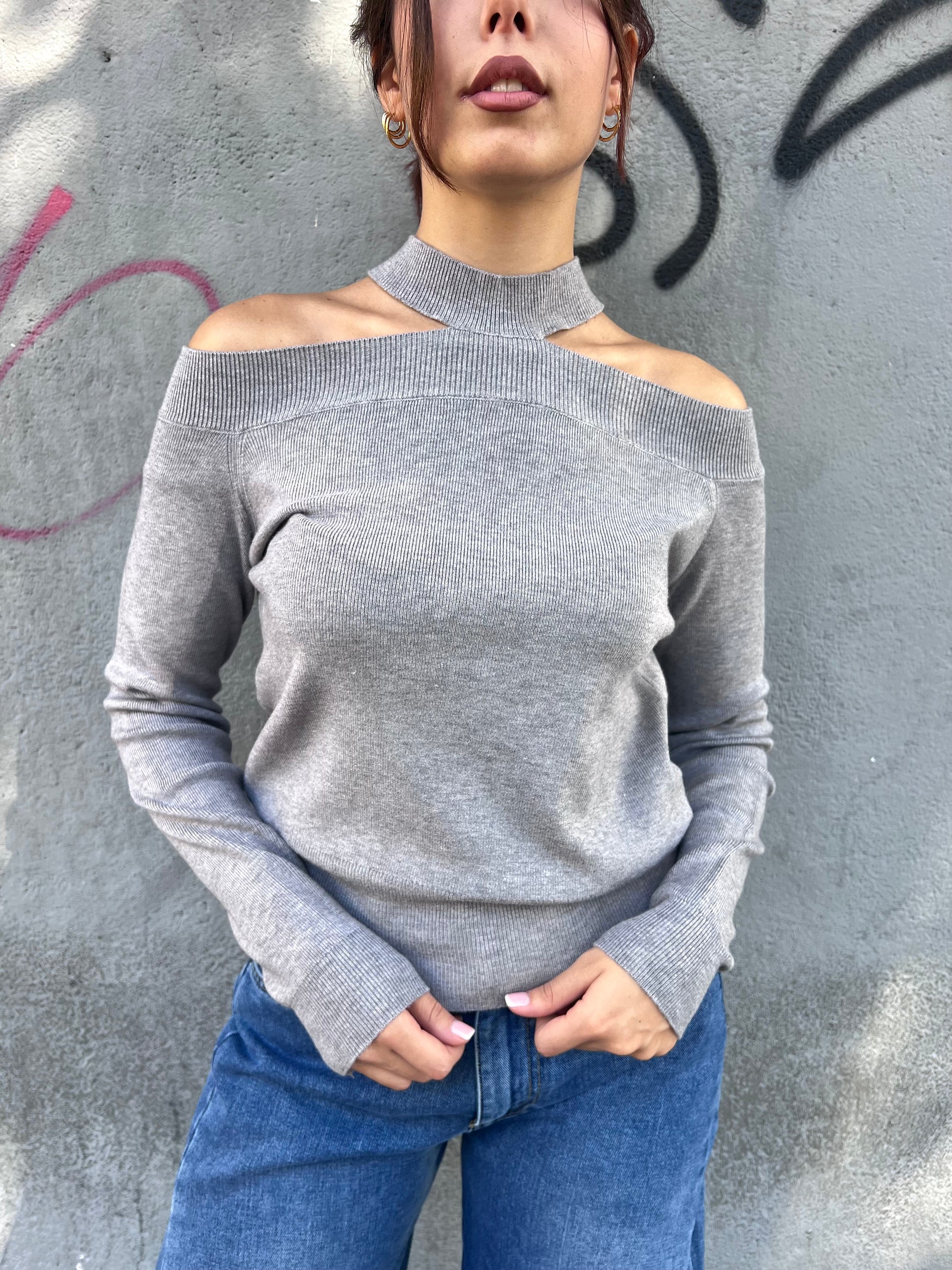 SUSY MIX MAGLIA RASATA CUT OUT VERONICA GRIGIO