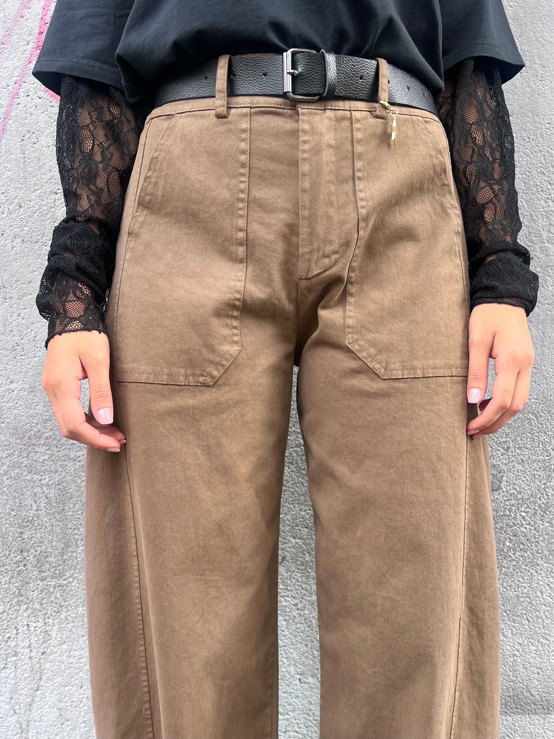 SUSY MIX PANTALONE VITA ALTA BALLON STELLINA TABACCO
