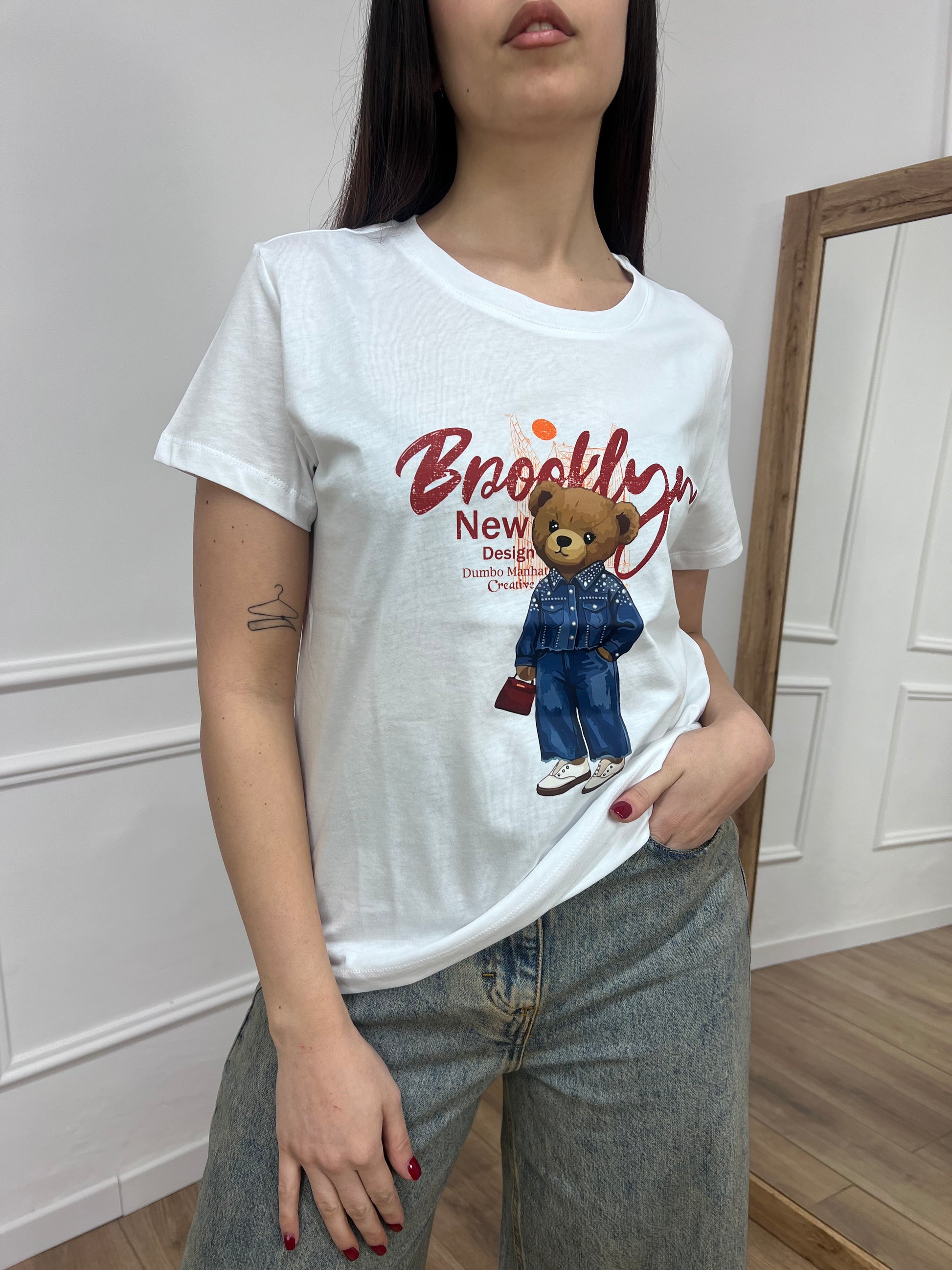 SUSY MIX T-SHIRT M/C BASIC “ORSO BROOKLYN BIANCO